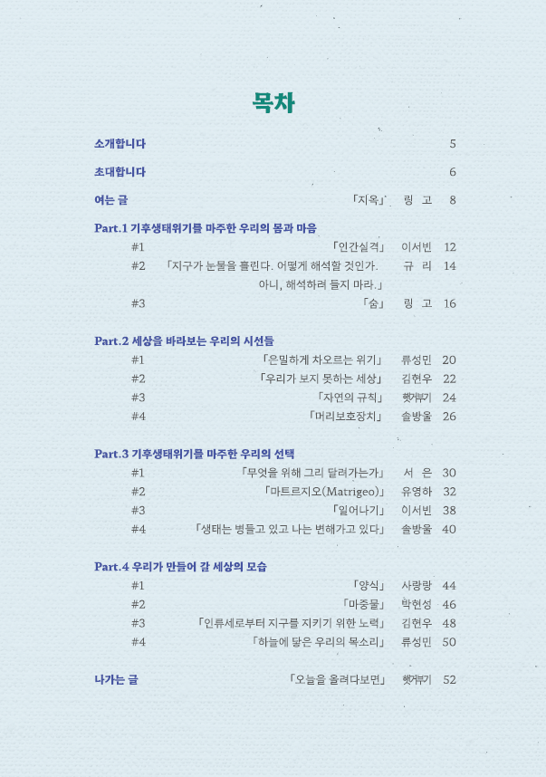 ※ 각 글의 저작권은 작가에게, 본 작품집의 저작권은 (사)환경교육센터에 있습니다.